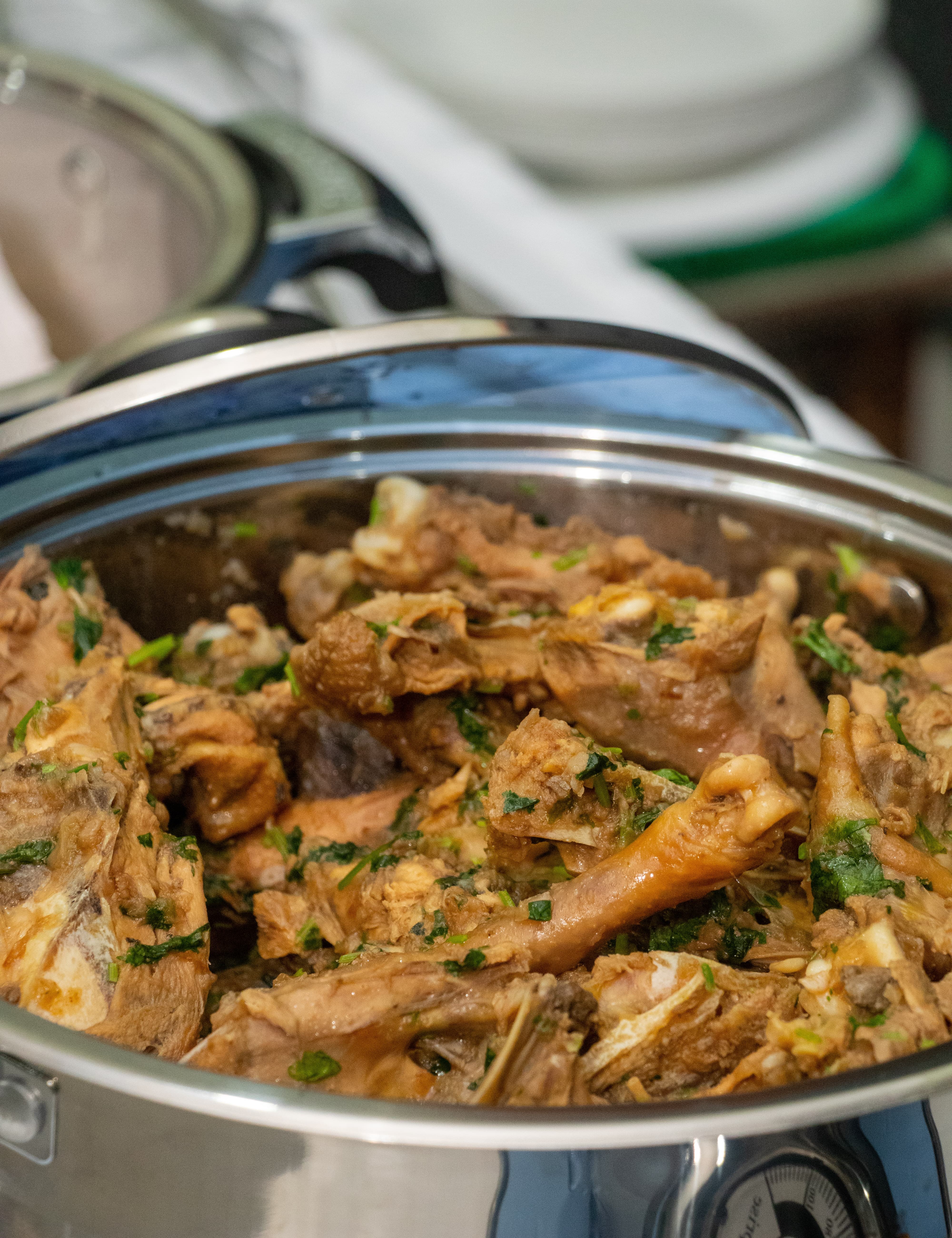 Indulgence in every bite! Juicy, slow-cooked chicken or meat in a rich, spicy gravy, perfectly paired with rice or bread for a hearty, satisfying meal.